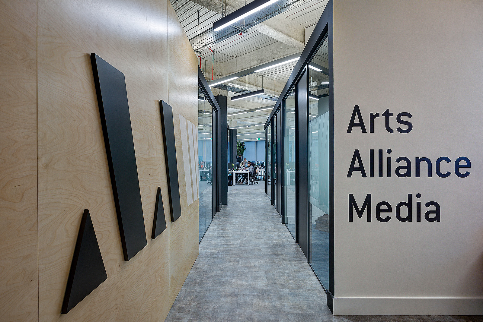 Leaving their current west London office space, Arts Alliance Media chose a floorplate in the WestWorks Campus at White City Place for their new office. In sympathy with its historical significance, the building has been given a new life with interventions to improve the functionality of the floors, give it a visual uplift and to open out the elevations to improve ease of movement and facilitate interesting interactions and collaborations within the building.