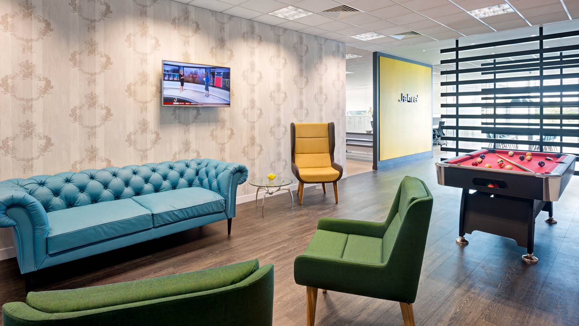 NHQ won the contract for the full office design and fit-out project and set about capturing and interpreting the company’s ambitious ideas. These included ‘creative display stands’, acoustic buffers’ and ‘touch-down areas for field staff’. While the company is divided for organisational purposes into ‘consumer’ and ‘business’ focused departments, Jabra did not want the demarcations to be obvious to visitors from either camp.
