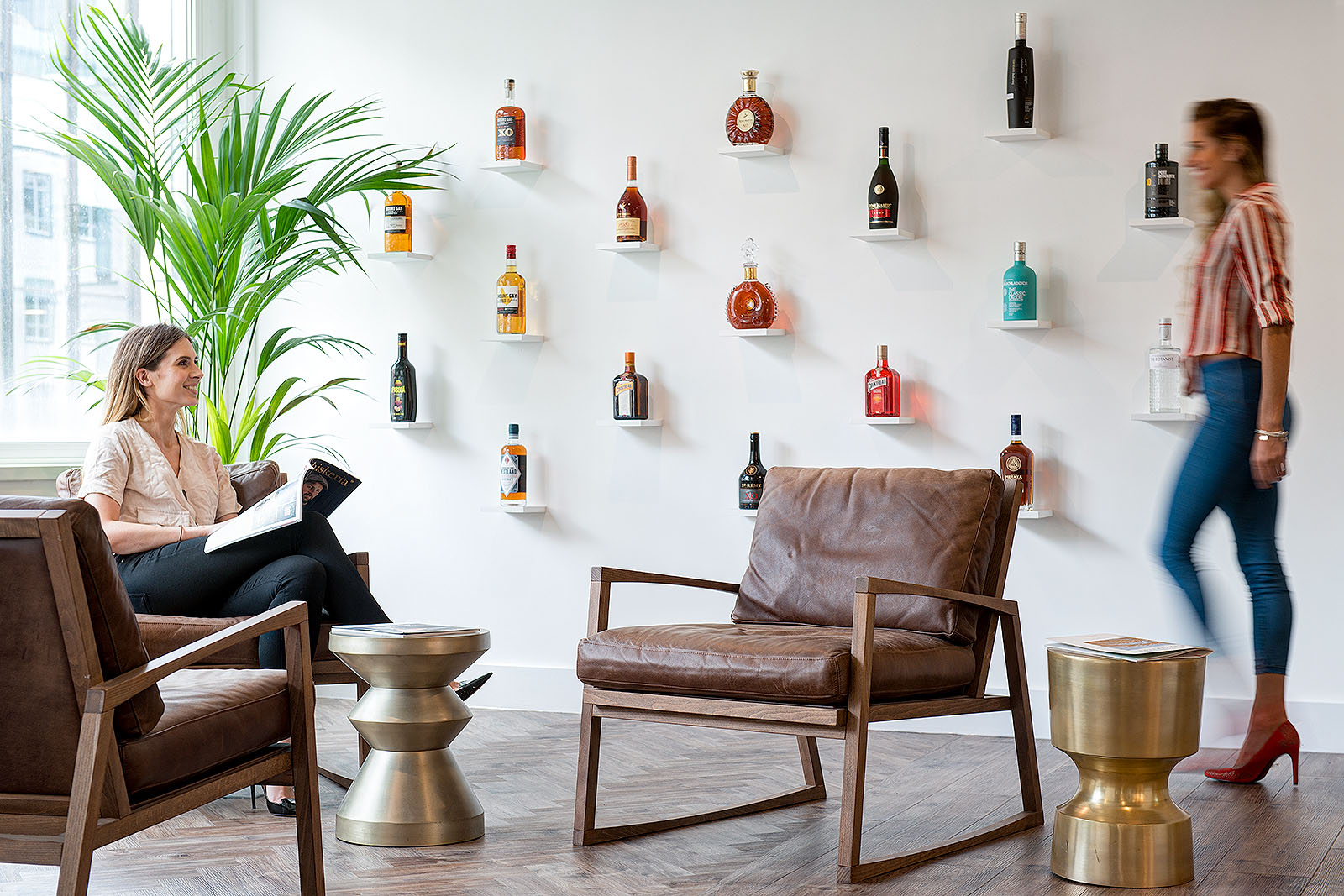 The comprehensive refurbishment coincided with the start of a new lease on our client’s existing space on the 3rd floor of 40 Berners Street in London’s West End. The brief included a review of the way staff worked to ensure that the new layout was more flexible and efficient and completely fit-for-purpose for the new lease term. A new front-of-house was to be developed to give clients an immersive experience, fully reflective of the Rémy Cointreau brand. Our clients temporarily relocated out of the space to enable works to proceed and the whole project had to be delivered against a fast-track programme to enable our clients to return to the completed space on time.