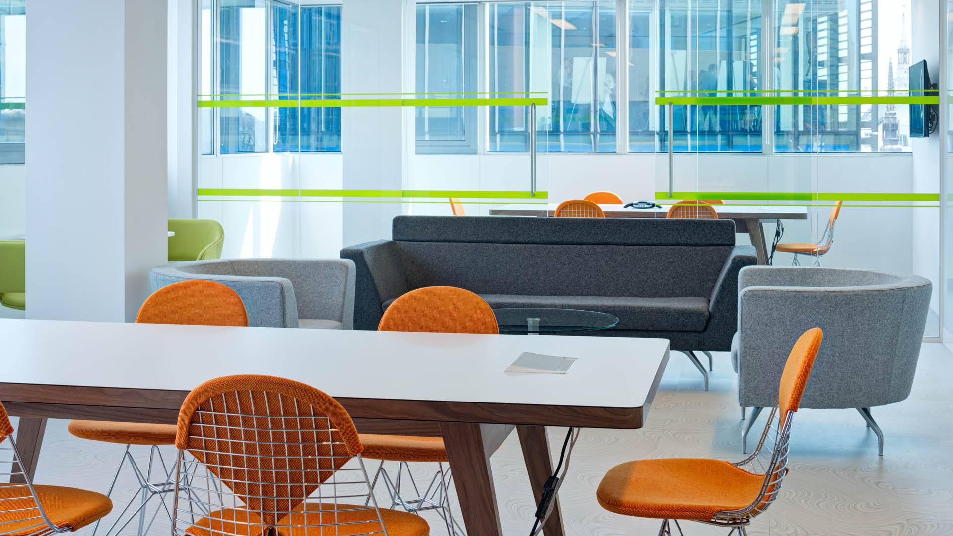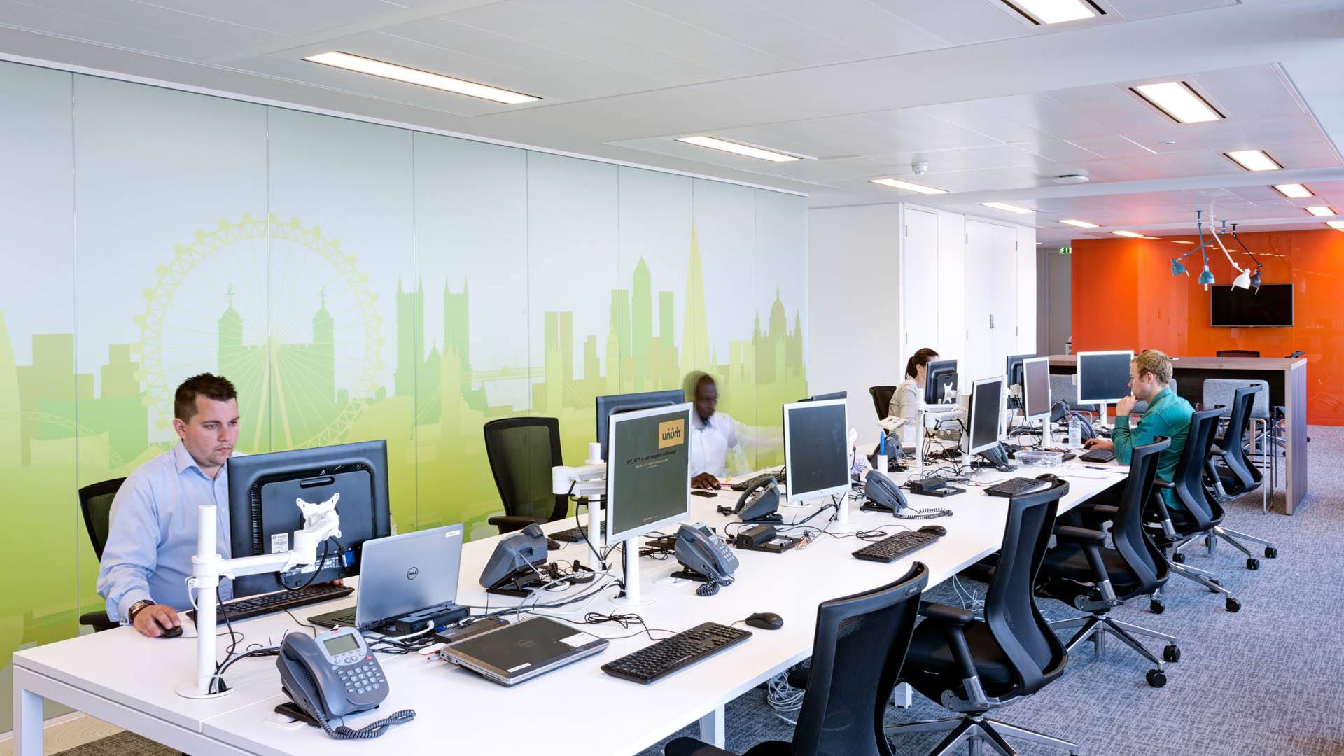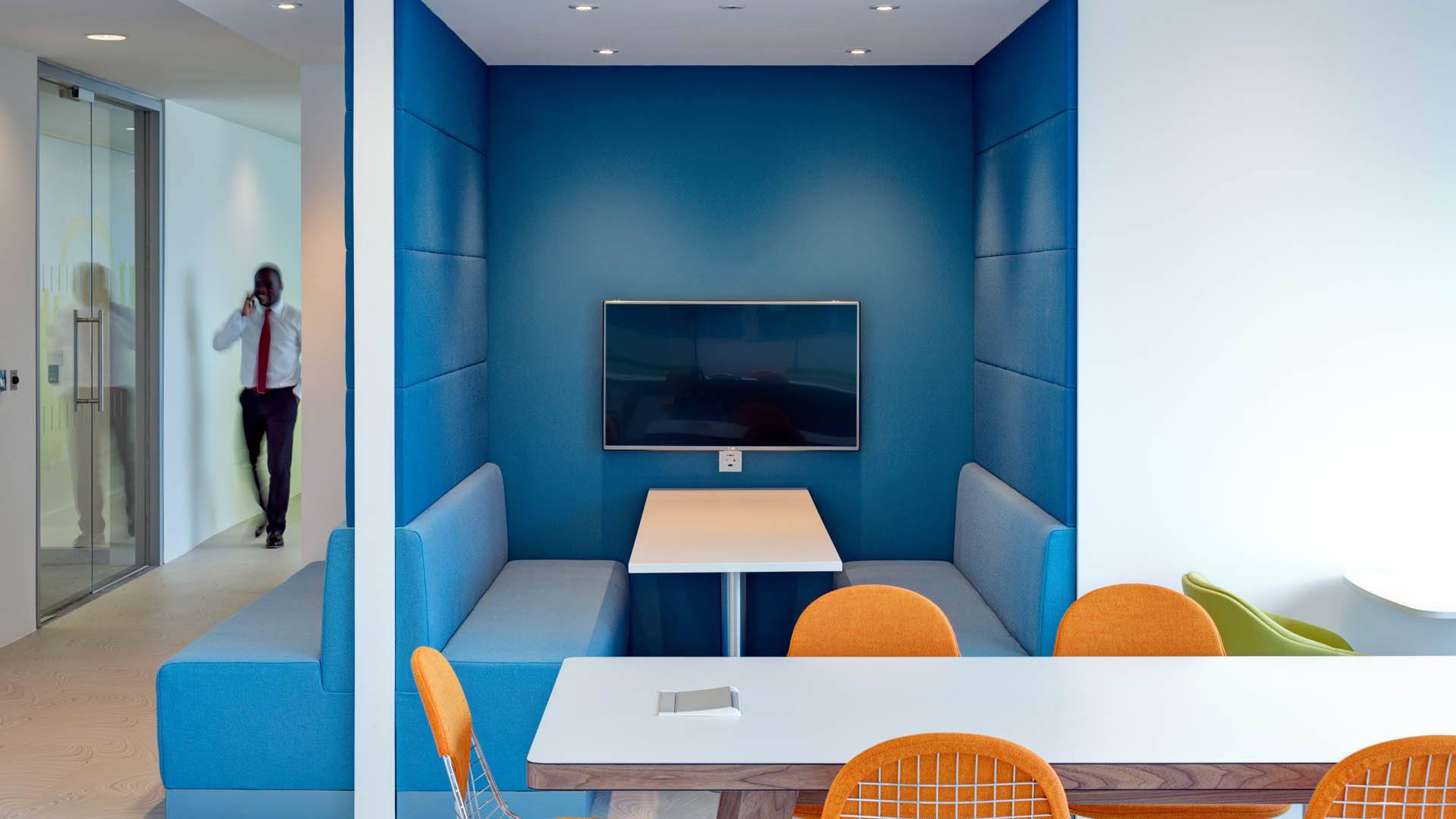 According to the highly detailed brief, the office design needed to encourage workers to leave whichever desk they happened to be using clear at the end of the day. The meeting spaces had to suit groups of between two and six with varying privacy requirements and the sales area had to be separated from the visitor area without using hard walls.